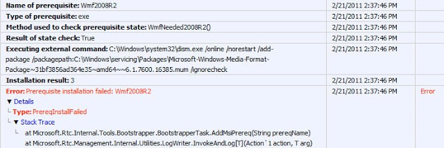 Error: Prerequisite installation failed: Wmf2008R2