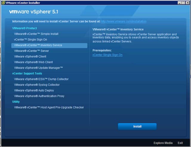1. Launch the vSphere 5.1 Installer and select vCenter Inventory Service from the main menu.