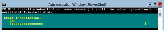 install-windowsfeature -name server-gui-shell -includemanagementtools -source:wim:c:\install.wim:2