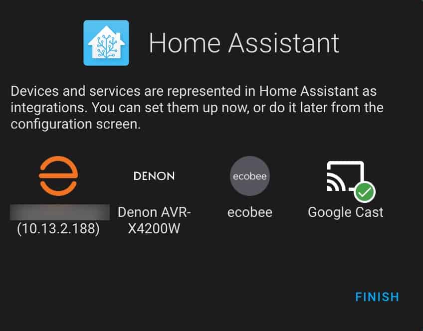 32. On the next screen HA will show you all of the devices and services that it found on your network. Do NOT set any of them up here. Just click Finish.Â