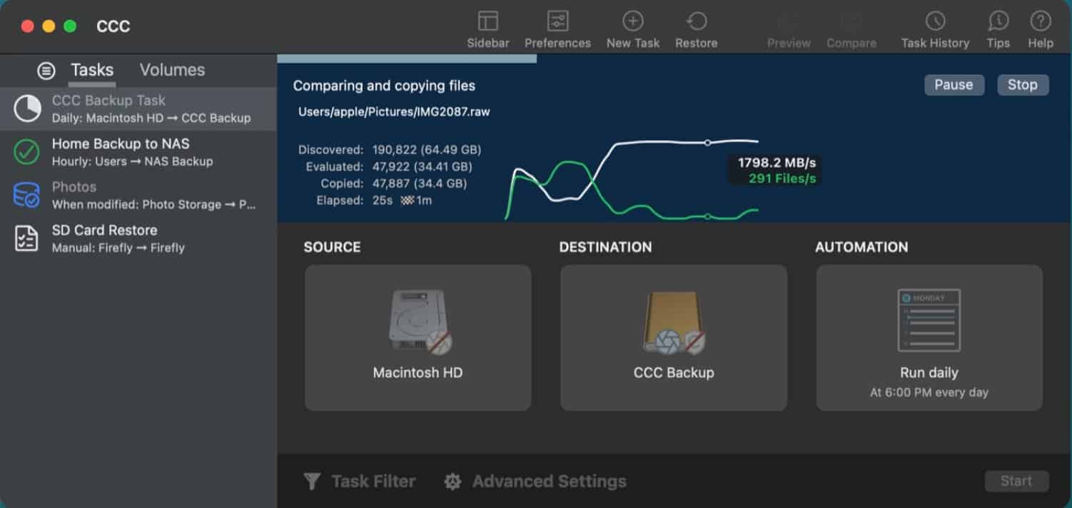 ($39.99 one-time) Carbon Copy Cloner is a robust macOS backup utility. CCC is fast, supports APFS, snapshots, and a variety of backup targets including external disks and NAS. You can create bootable backups as well, but with Big Sur onwards and in particular M1 Macs, those have little utility.Â