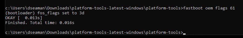 9. Pull the power to your Echo show. Hold down the Mute button, and apply power. Wait until it boots into Hacked fast boot mode. Open an elevated command prompt in the unzipped SDK platform tools directory and type: