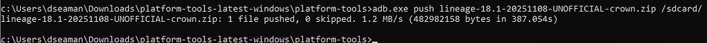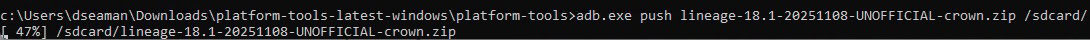 adb.exe push lineage-18.1-20251108-UNOFFICIAL-crown.zip /sdcard/