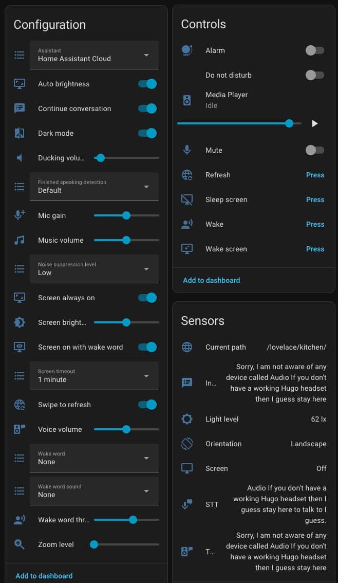 The Echo Show devices do not have high end CPUs. Lineage is more alpha/beta, than “production” quality but has been quite stable for me. Bottom line: This is more an experiment in the unknown, and expect some hiccups. However, on balance Lineage Android plus Home Assistant has been a very positive experience. I’m using them with View Assist, which really opens up the possibilities beyond just showing a Home Assistant dashboard.