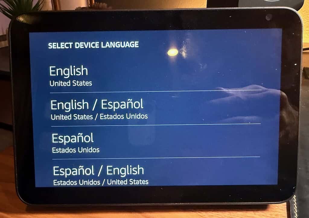 Plug in your new Echo Show 5 Gen 1, or Echo Show 8 Gen 1.Wait for it to boot and select your language. Note: At the time of the publication of this post, NO OTHER Echo Show models OR generations are supported. You MUST use an Echo Show 5 Gen 1 or Echo Show 8 Gen 1. You can keep tabs on the XDA Amazon forum for any newer developments for additional models that have been jail broken.