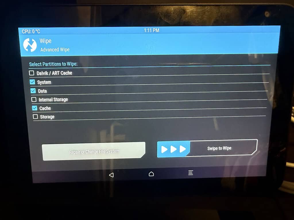 14. At this point Fire OS has been jailbroken and you could side load new apps. However, for better Home Assistant app responsiveness, we will wipe Fire OS and flash your Echo Show with Android LineageOS. This also eliminates the chance that Amazon could sneak an update on your Echo show to disable the exploit.