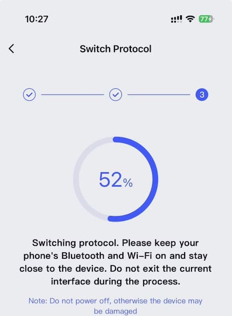 12. Wait for the two step firmware update process to complete. DO NOT NAVIGATE AWAY FROM THE AQARA APP.Â