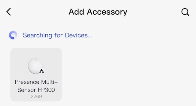 - At the top of the screen in the Aqara app it should show your FP300. Tap on Presence Multi-sensor FP300. If it doesn’t appear after ~30 seconds, you might want to force quit the Aqara app and go back into Add Accessory mode.Â