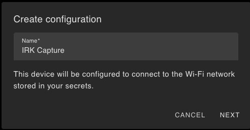 - Enter the desired name of your ESP32 device (e.g. IRK Capture).