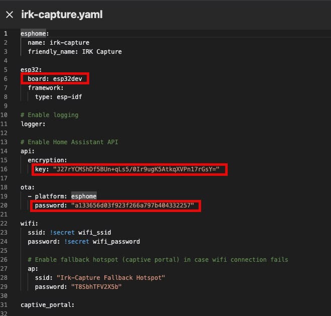 If you run into issues capturing your IRKs, surf over to my IRK Capture for ESPHome page on Github and scroll to the bottom for advanced troubleshooting tips.Â
