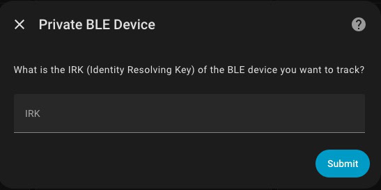 - Click on Add integration and search for Private BLE Device. Click on it then paste in your captured IRK.